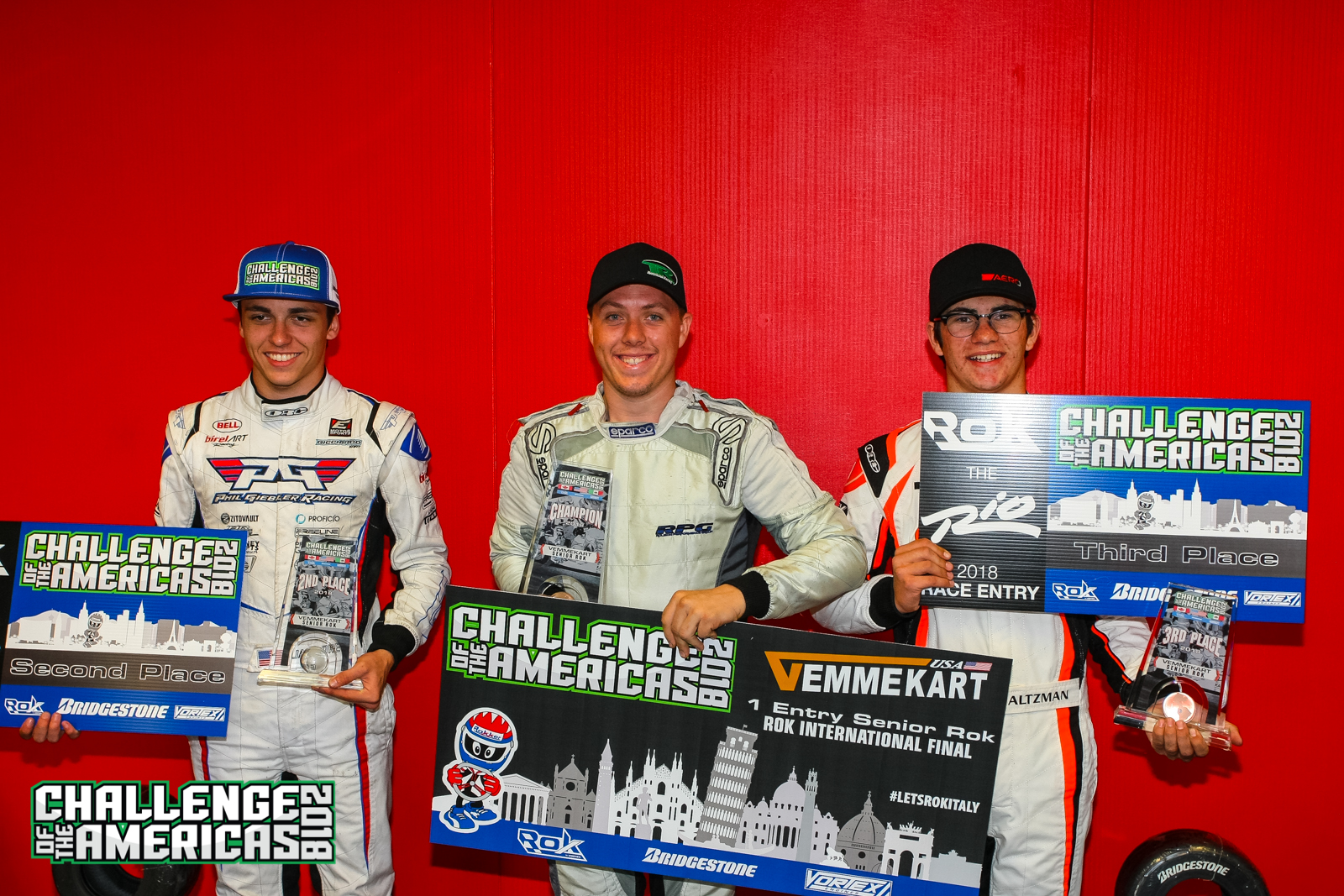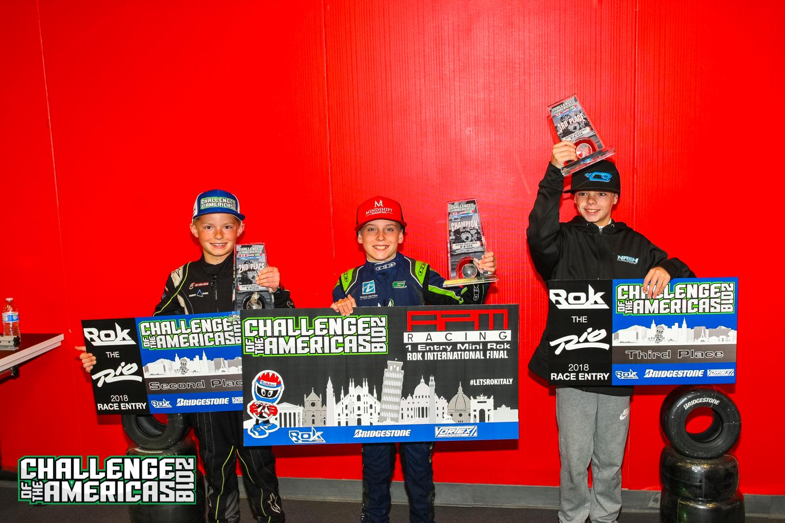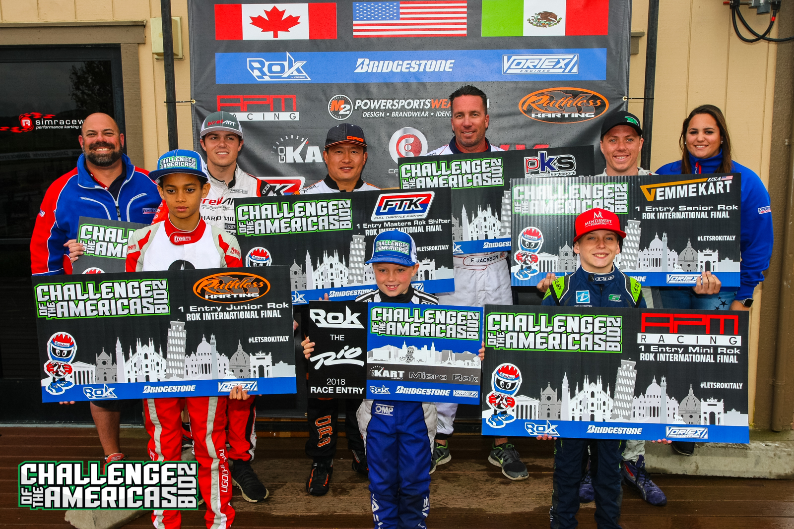 2018 Challenge of the Americas Champions: Micro Rok – Gage Jarvis, Mini Rok – Chase Gardner, Junior Rok – Ugo Ugochukwu, Senior Rok – Jim McKinney, Masters Rok – Erik Jackson, Masters Shifter Rok – Kalvin Chen, Senior Shifter Rok – Alex Keyes