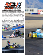 Brett Harrelson was able to complete the task at hand on the day in the M2 Masters 100cc division, and redeem himself from his Saturday mishap. Harrelson was leading Saturday’s main event late when he made enough contact with a barrier out of the hairpin it resulted in his race ending. Sunday, Harrelson came back with the same speed from the day before to set fast time in qualifying and win the Prefinal. In the main event, Timothy Meyer (HRT / EOS) and Saturday winner Carlos Calderon (Aluminos) had the pressure on Harrelson. Meyer never made a move on Harrelson, and Calderon attempted to move past Meyer for the second spot. Their fight gave Harrelson enough breathing room to not put a wheel wrong in the closing laps and secure his first series victory. The P2 fight allowed for Mike Smith (VMI / EOS) to close in, and work past both Calderon and Meyer for the runner-up position on the podium. Calderon ended third, posting fast lap of the race. The battle for fifth went down to the wire with Ian Koentges (FDM / CompKart) earning his best finish of the weekend.